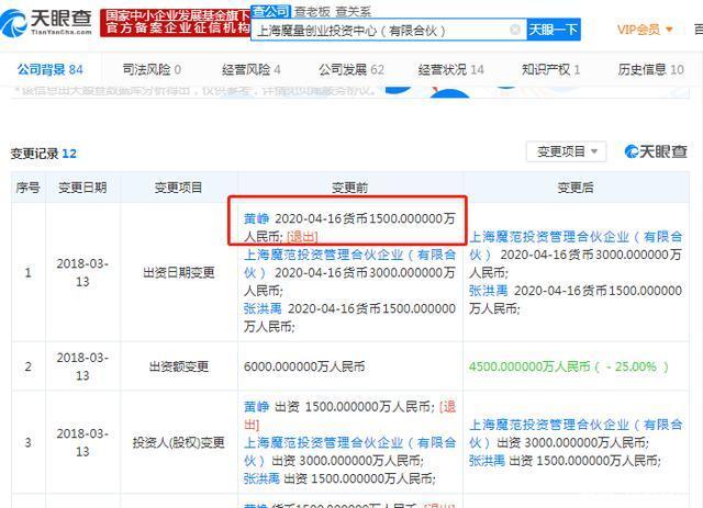 2018年3月13日,黄峥退出上海魔量创业投资中心,该公司经营范围包括创业投资,实业投资,投资管理等。