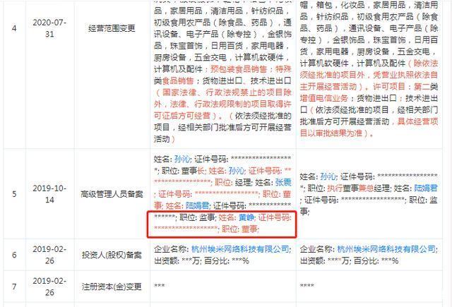 天眼查数据显示,7月31日,杭州埃米网络科技有限公司发生工商变更。其中,拼多多创始人黄峥卸任公司董事一职,同时退出的还有拼多多联合创始人孙沁,朱健翀接任法定代表人。